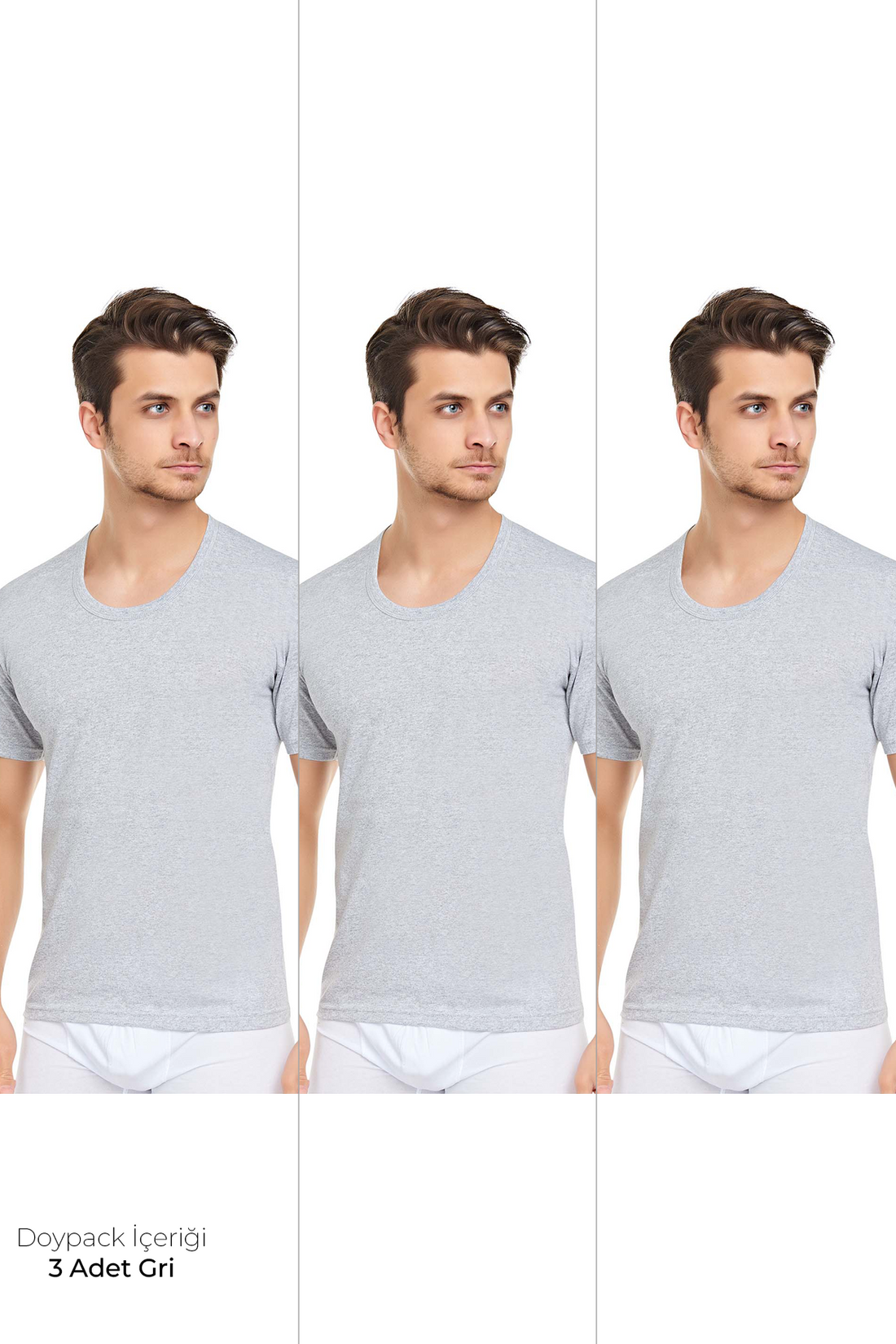 Erkek 3'lü Bisiklet Yaka Gri Fanila - Özel Paketinde