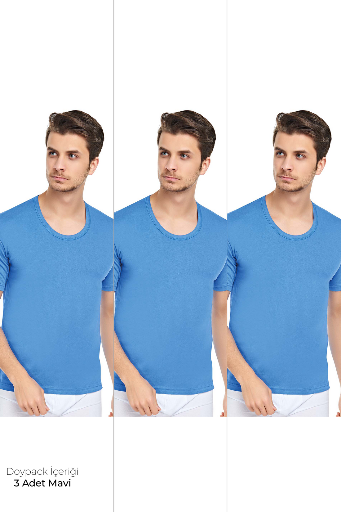 Erkek 3'lü Bisiklet Yaka Mavi Fanila - Özel Paketinde