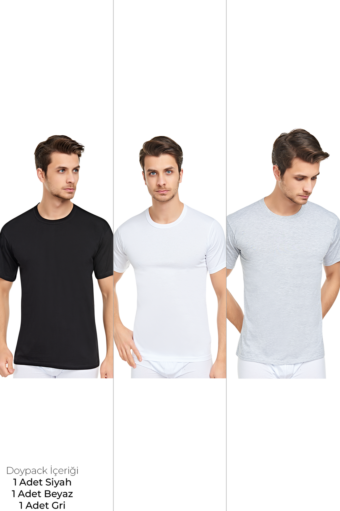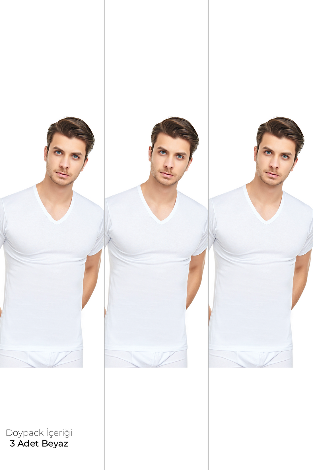 Erkek Sıfır Yaka Yarım Kol Fanila 3'lü Paket