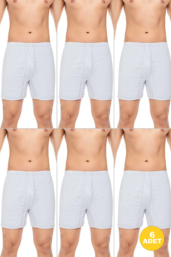 Erkek 6'lı Ekonomik Likralı Gri Boxer - Özel Kutusunda