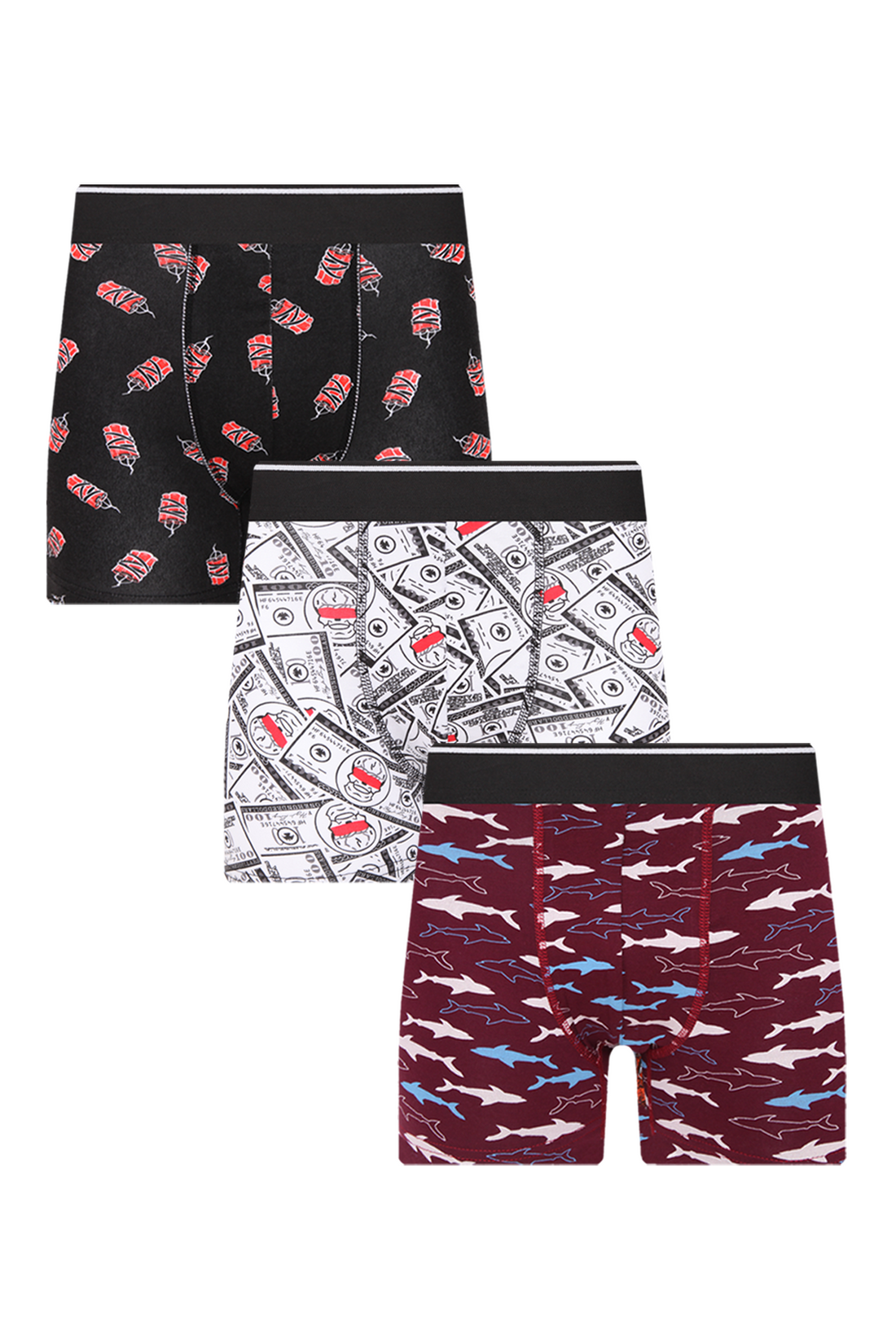 Erkek 3'lü Likralı Desenli Karışık-6 Boxer - Premium Ambalajlı Paketinde