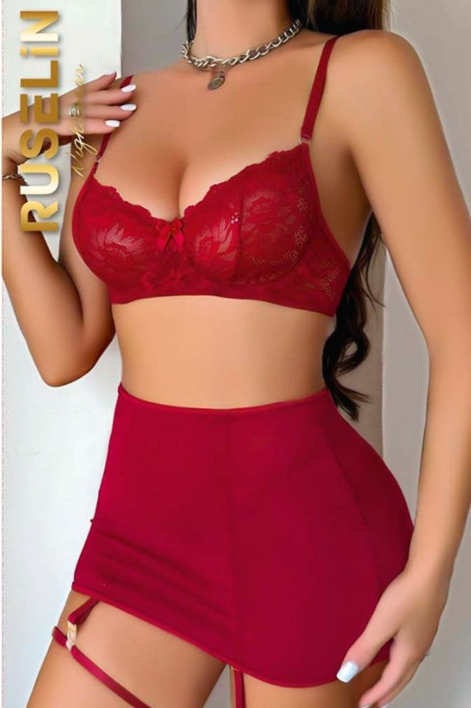 Kadın Kırmızı Dantel Detaylı Transparan Etekli Gecelik Takımı – Cesur, Zarif ve Baştan Çıkarıcı! Tutkunun...
