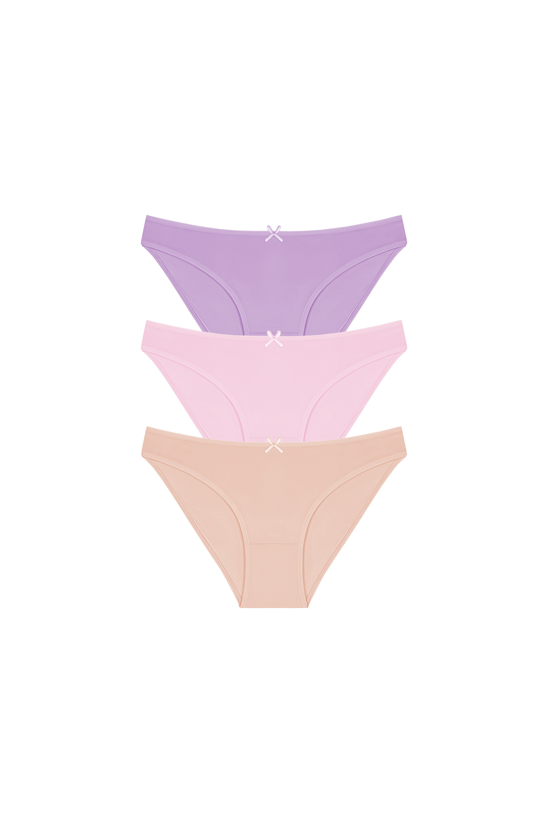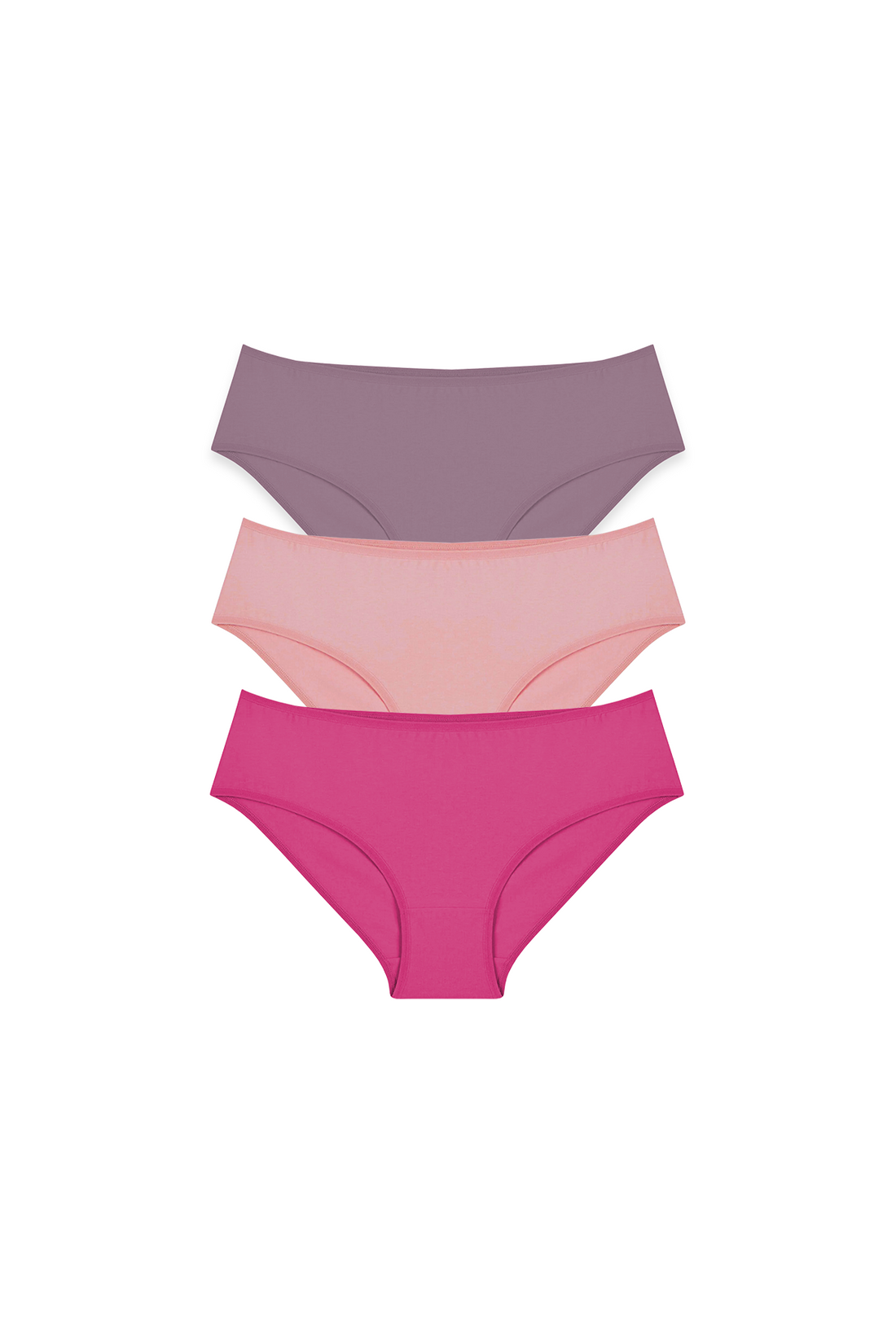 Kadın 3'lü Standart Beden Lila, Pembe ve Somon Slip Külot - Özel Paketinde Bu kadın...