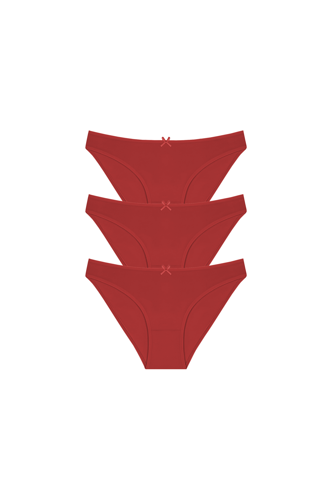 Kadın 3'lü Standart Beden Kırmızı Slip Külot - Özel Paketinde