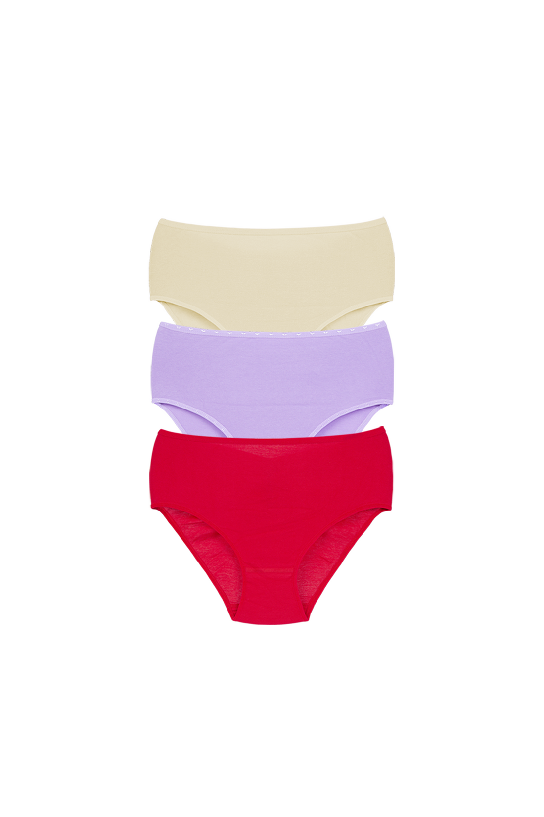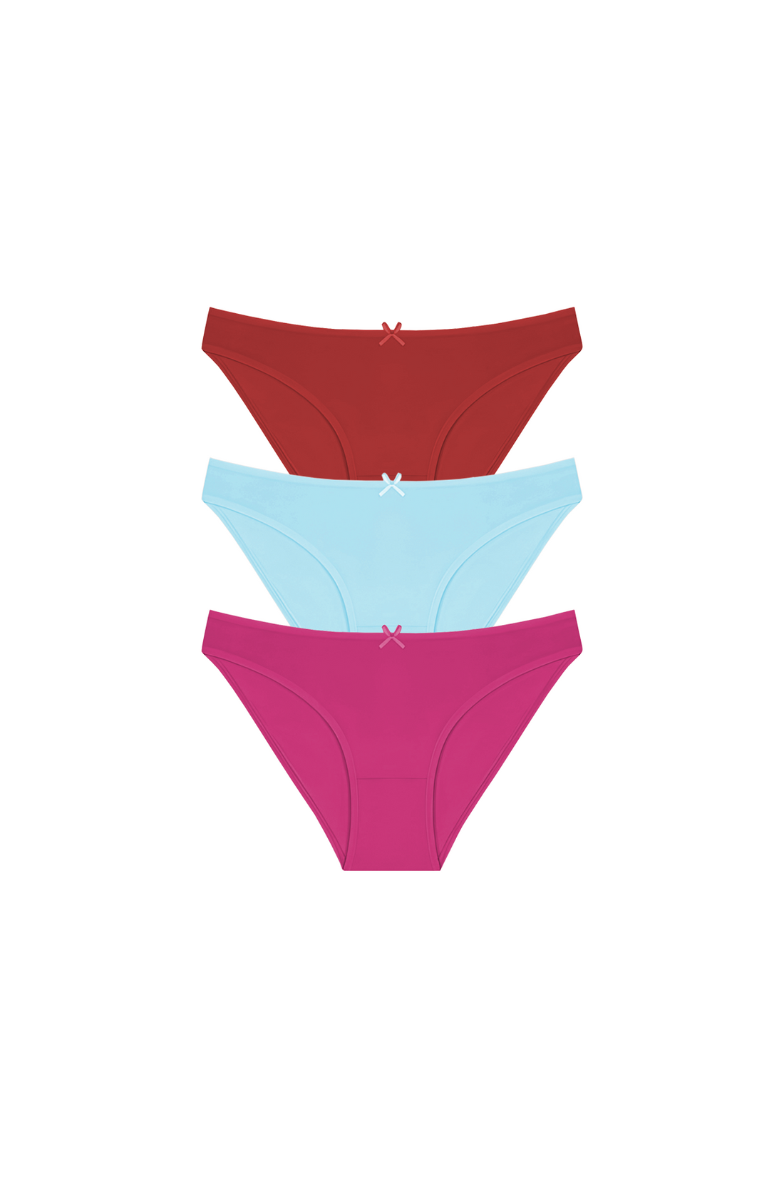 Kadın 3'lü Standart Beden Kırmızı, Mavi ve Fuşya Slip Külot - Özel Paketinde Bu kadın...