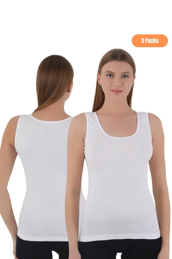 Kadın 3'lü Geniş Askılı Basic Beyaz Atlet - Özel Premium Paketinde