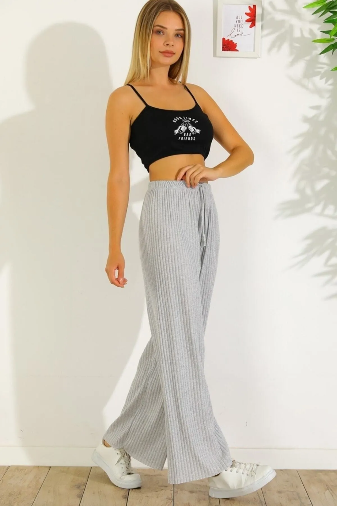Kadın Fitilli İnce Kumaş Günlük Giyim Rahat Kalıp Gri Kaşkorse Alt