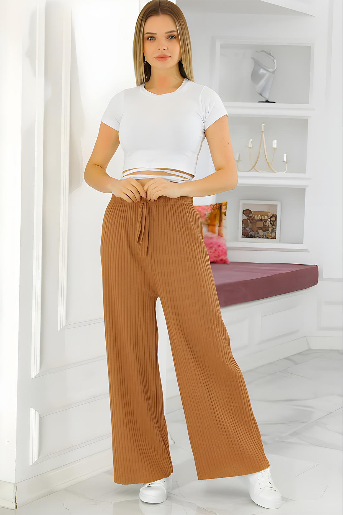 Kadın Fitilli İnce Kumaş Günlük Giyim Rahat Kalıp Vizon Kaşkorse Alt Bu fitilli ince kumaş...