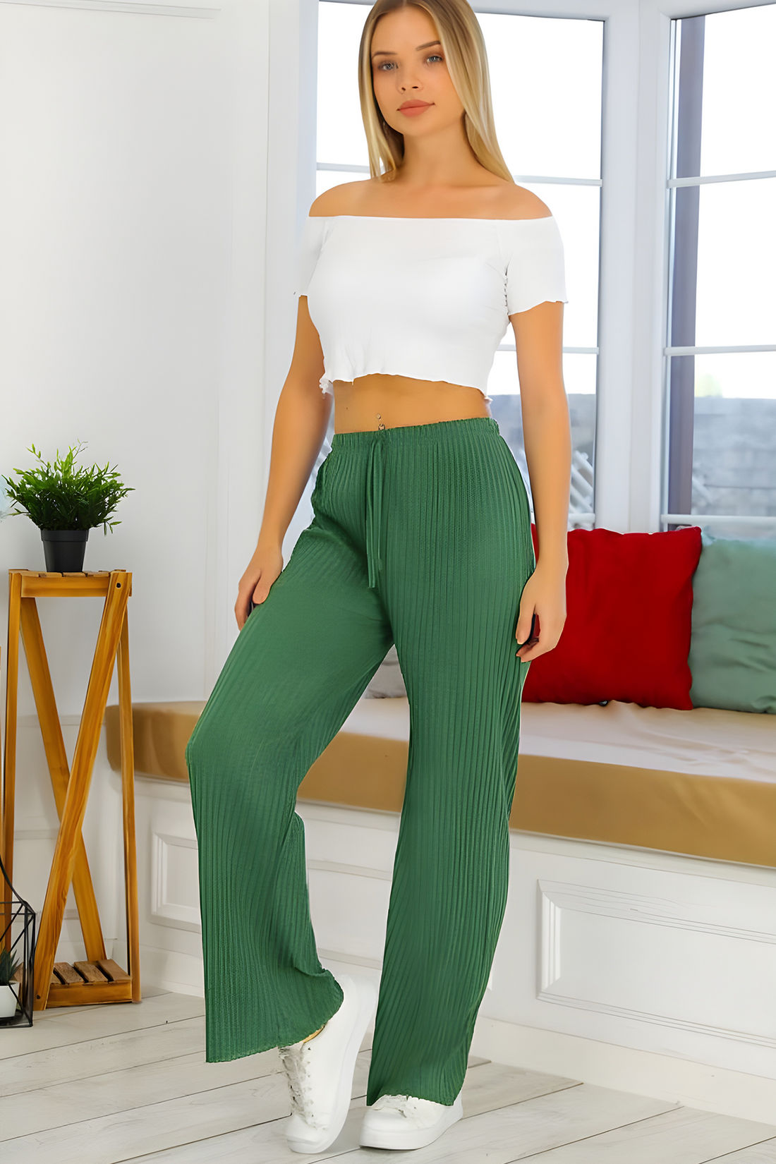 Kadın Fitilli İnce Kumaş Günlük Giyim Rahat Kalıp Yeşil Kaşkorse Alt Bu fitilli ince kumaş...