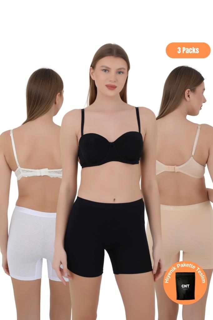 Kadın Boxer Külot - Lastikli Bel ve Yumuşak Kumaş 3'lü Özel Paket (Siyah, Beyaz, Ten Renk)