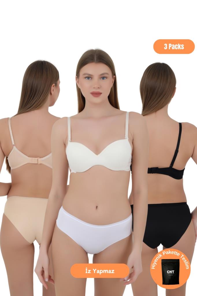 Kadın Mikro Kumaş Dikişsiz İz Yapmaz Külot - 3'lü Özel Paket (Siyah, Beyaz, Ten Renk)