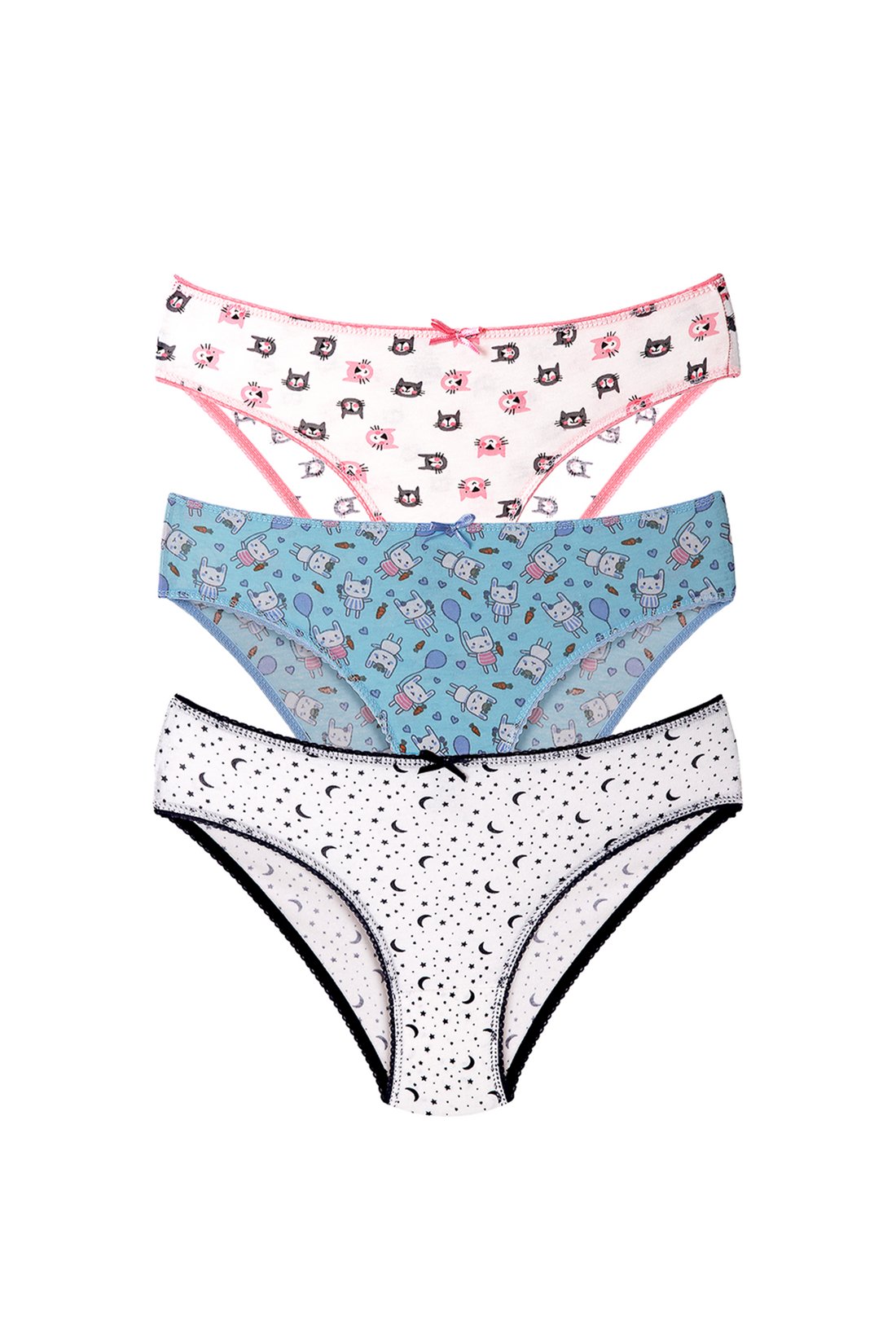 Kız Çocuk 3'lü Karışık-3 Desenli Külot - Özel Premium Paketinde