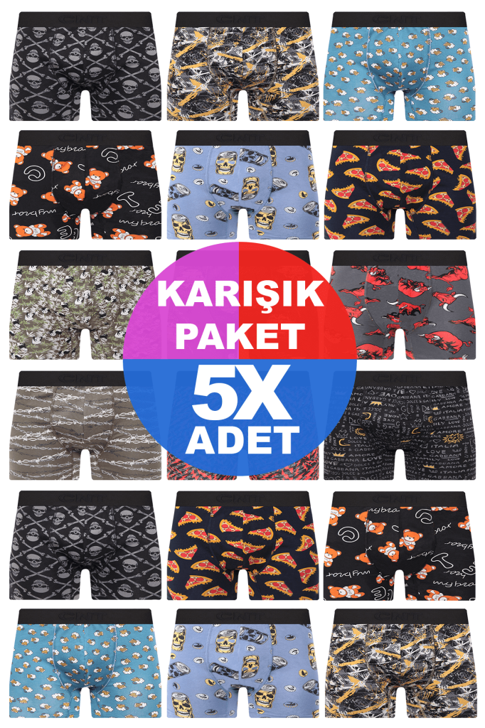 Erkek 5 Adet Rastgele Sürpriz Desenli Boxer - Özel Gizemli Paketinde Sürpriz Boxer