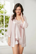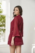 3'lü Saten Dantelli Şort ve Şifon Dantelli Sabahlık Takımı