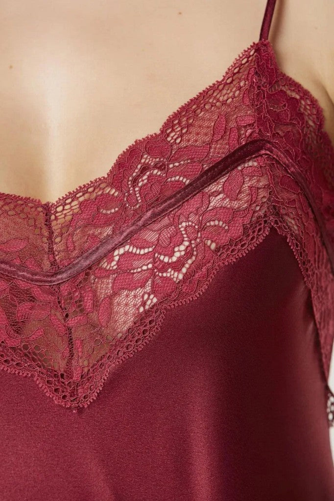 – Dantelli askılı saten bluz