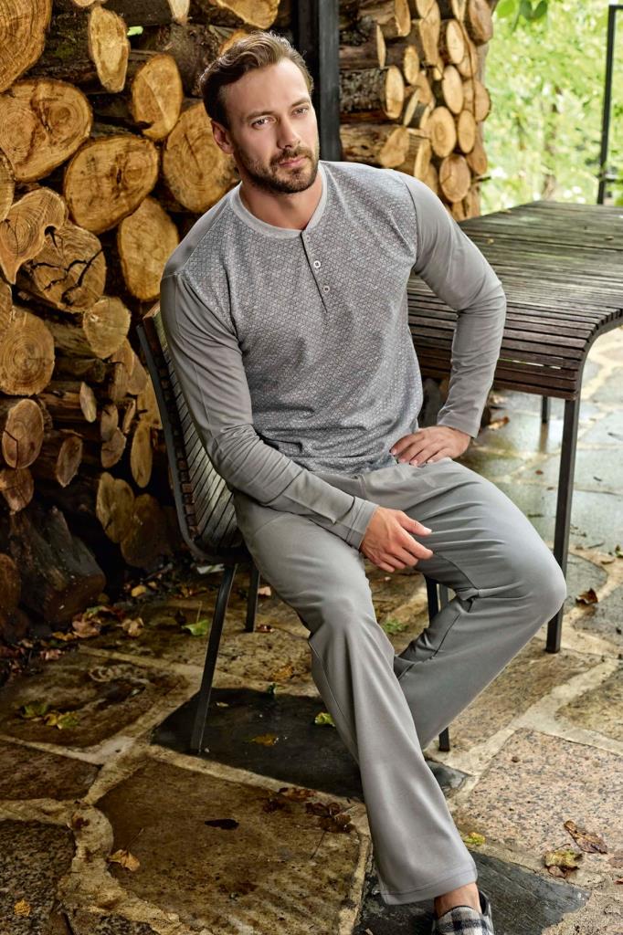 Aydoğan Erkek Jakarlı Kumaş Uzun Kollu Pijama Takımı - %100 Pamuk, Mevsimlik, Gri