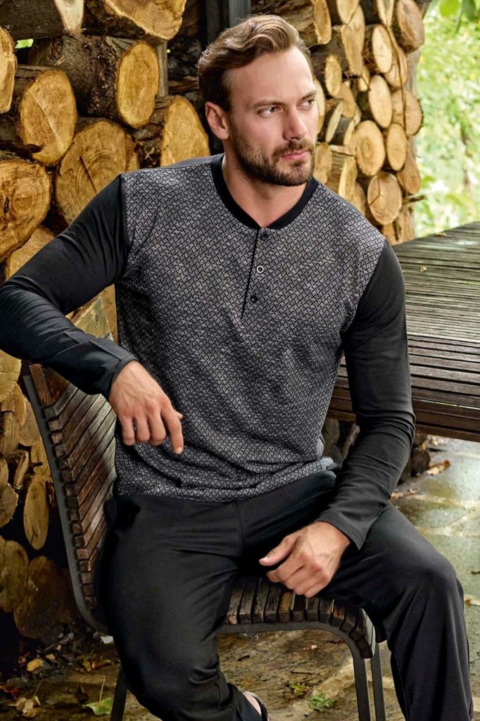 Aydoğan Erkek Jakarlı Kumaş Uzun Kollu Pijama Takımı - %100 Pamuk, Mevsimlik Rahat