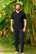 Aydoğan Erkek V Yaka Pijama Takımı – Siyah Üst ve Ekose Desenli Pantolon