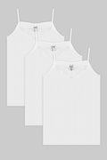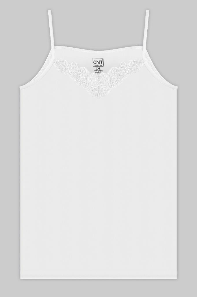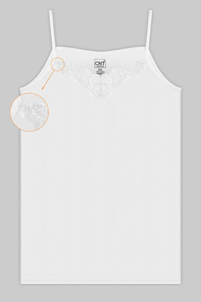 CNT Kadın 3'lü Paket Ribana V Yaka Pamuk Elestan Fit Dantelli Beyaz Atlet Büyük Beden ATLET