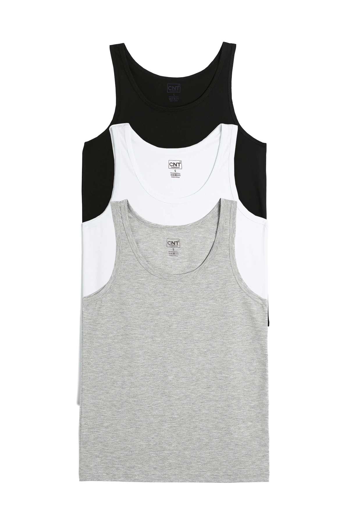 Bu siyah, beyaz ve gri pamuklu 3'lü atlet setiyle stilinizi tamamlayın ve gün boyu rahat edin!