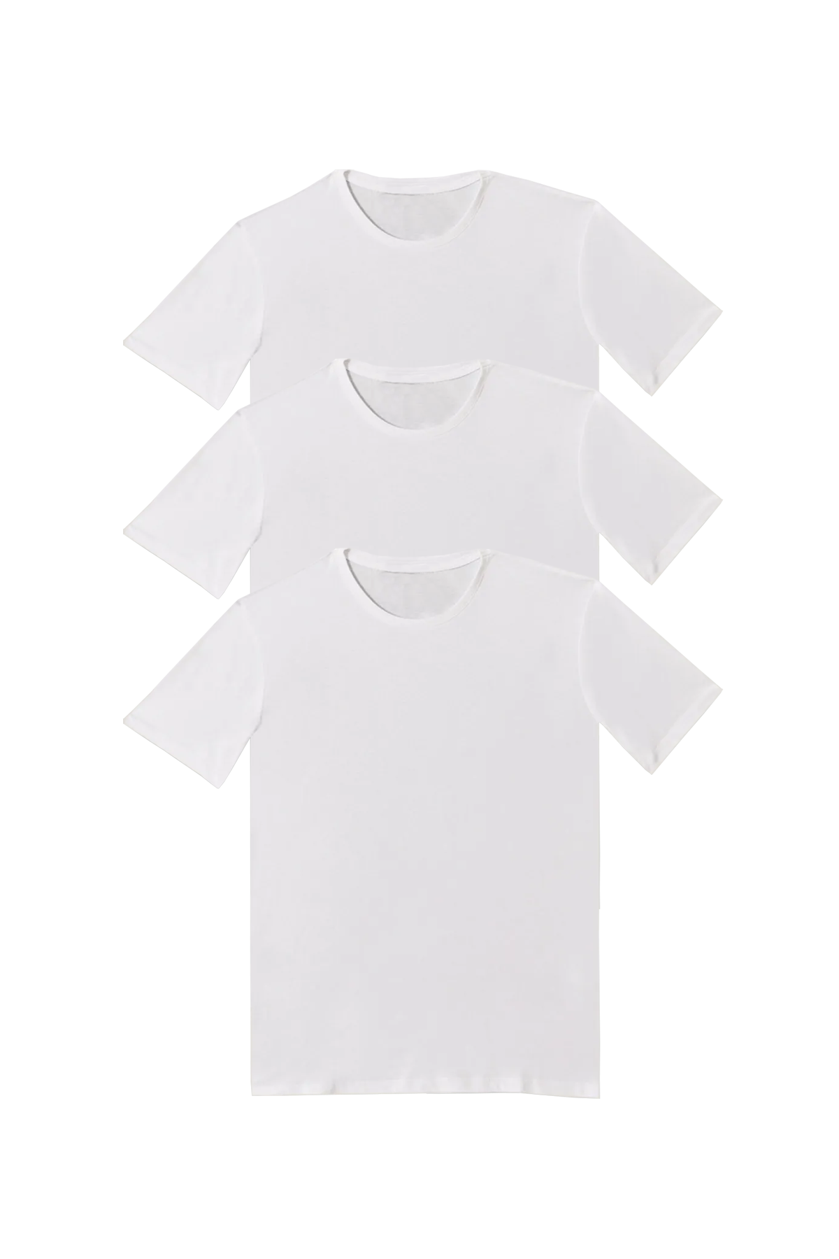 Erkek 3'lü Basic Sıfır Yaka Beyaz Tişört - Özel Premium Paketinde