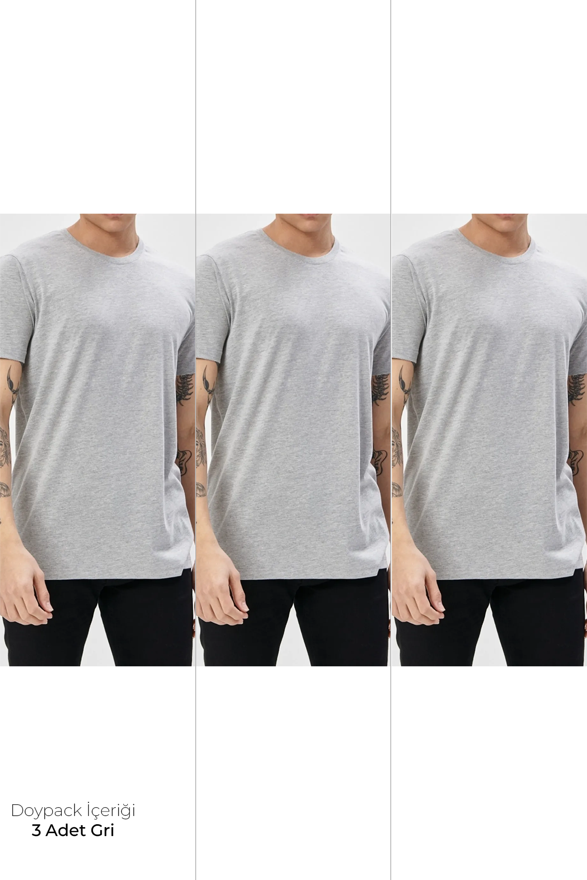 Erkek 3'lü Basic Sıfır Yaka Gri Tişört - Özel Premium Paketinde