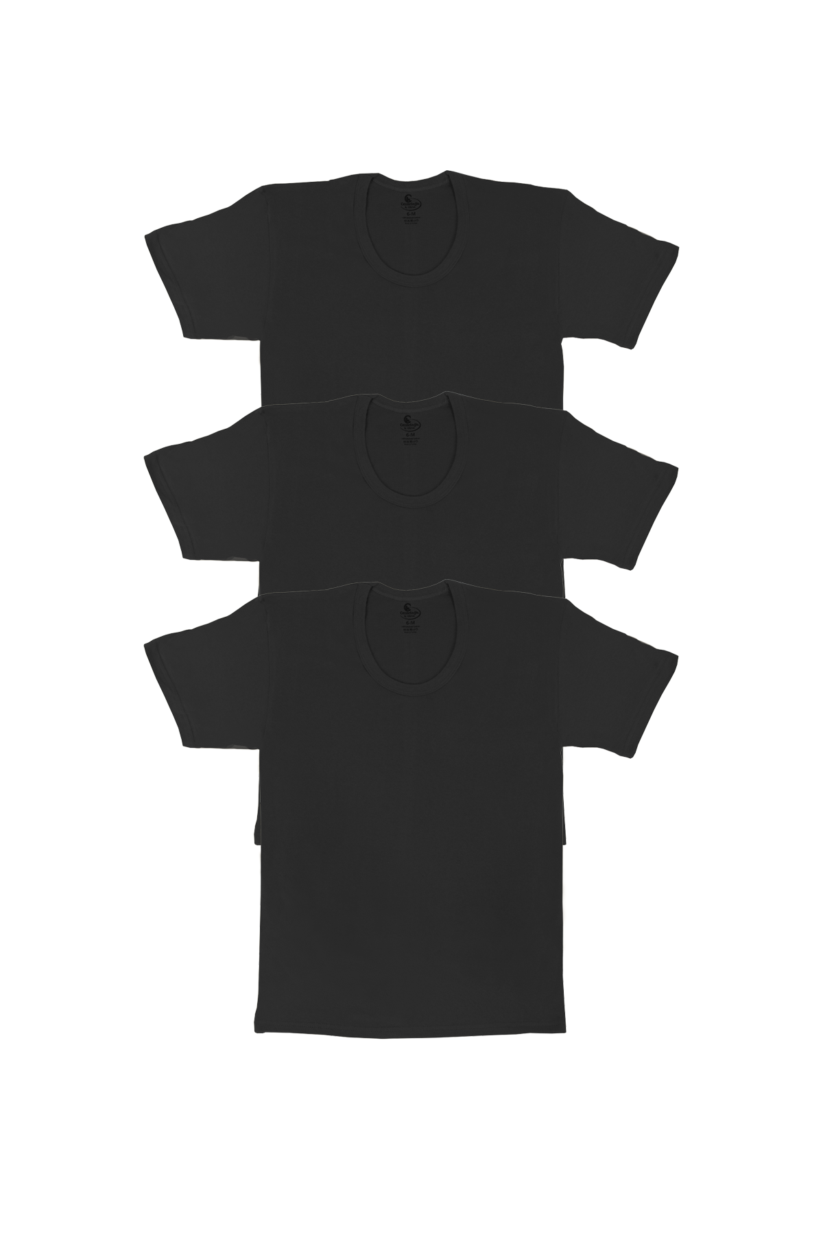 Erkek 3'lü Bisiklet Yaka Siyah Fanila - Özel Paketinde