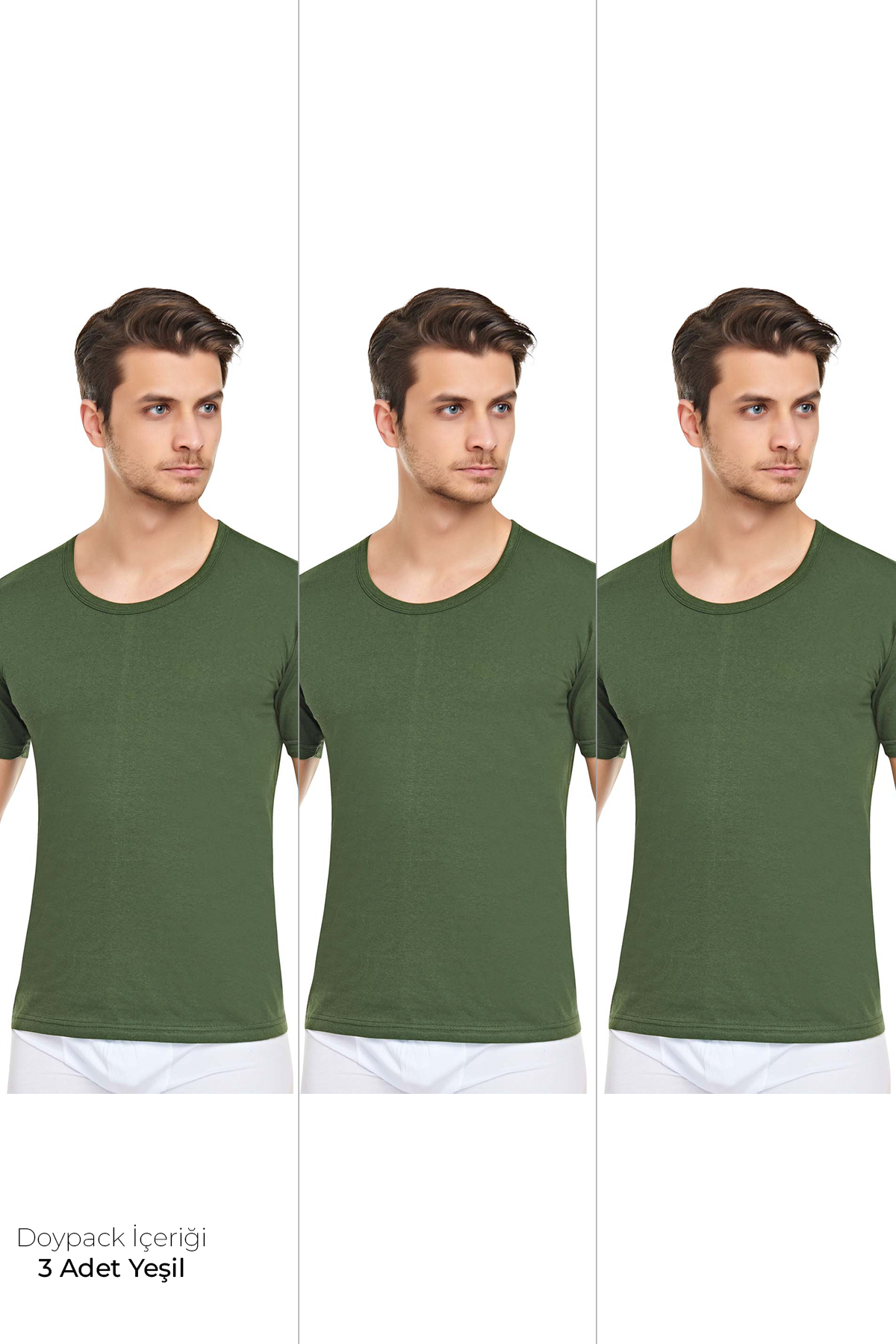 Erkek 3'lü Bisiklet Yaka Yeşil Fanila - Özel Paketinde