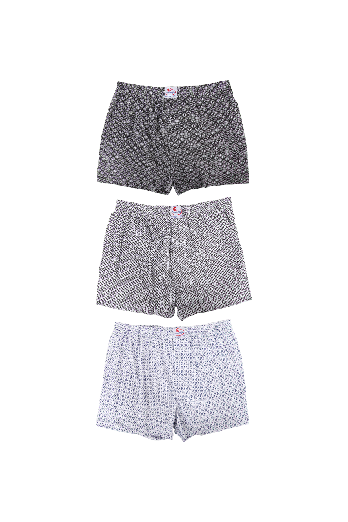 Bu erkek 3'lü karışık desenli düğmeli rahat boxer şort seti ile tarzınızı tamamlayın ve rahatlığın keyfini çıkarın!