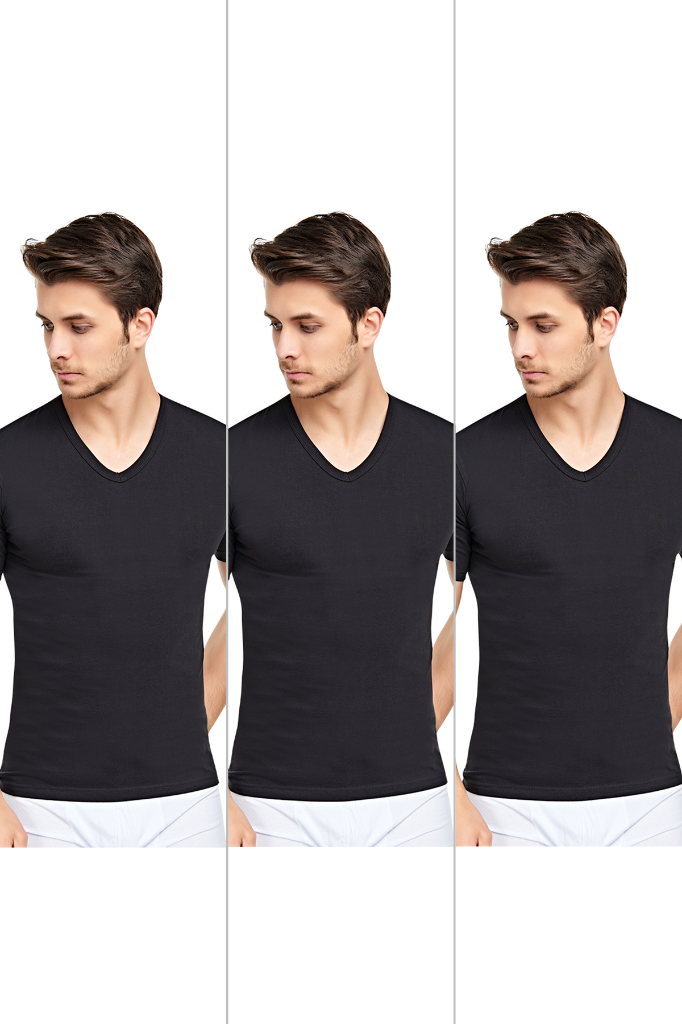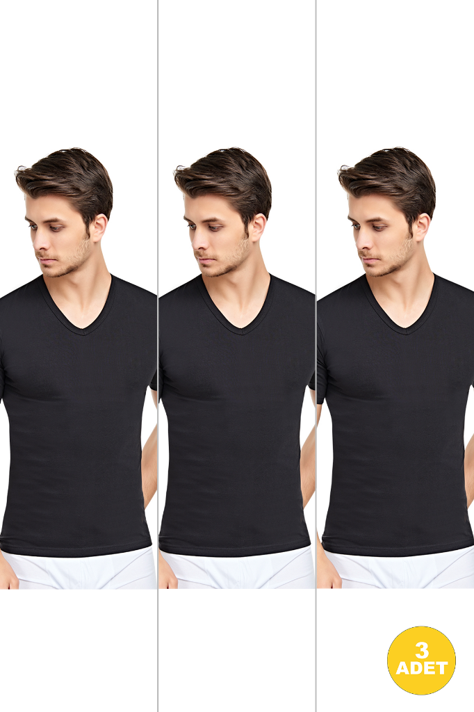Erkek 3'lü V Yaka Siyah Penye Fanila - Özel Premium Paketinde