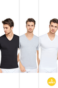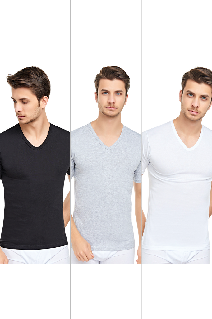 Özel premium paketinde sunulan bu siyah V yaka fanila seti, gardırobunuzun vazgeçilmez parçası olacak. Şimdi stilinize zarif bir dokunuş katmak için bu 3'lü V yaka fanila setini keşfedin!