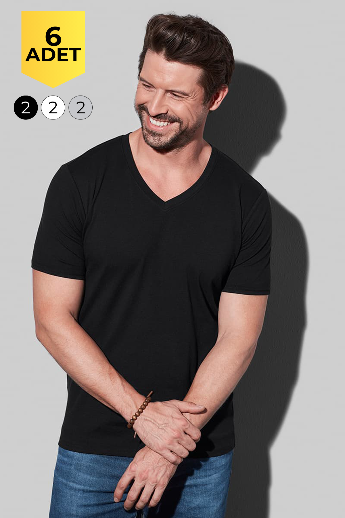 Erkek 6'lı Basic V Yaka Karışık Penye Tişört - Özel Premium Kutusunda