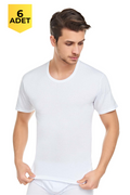 Erkek 6'lı Bisiklet Yaka Beyaz Fanila - Özel Paketinde