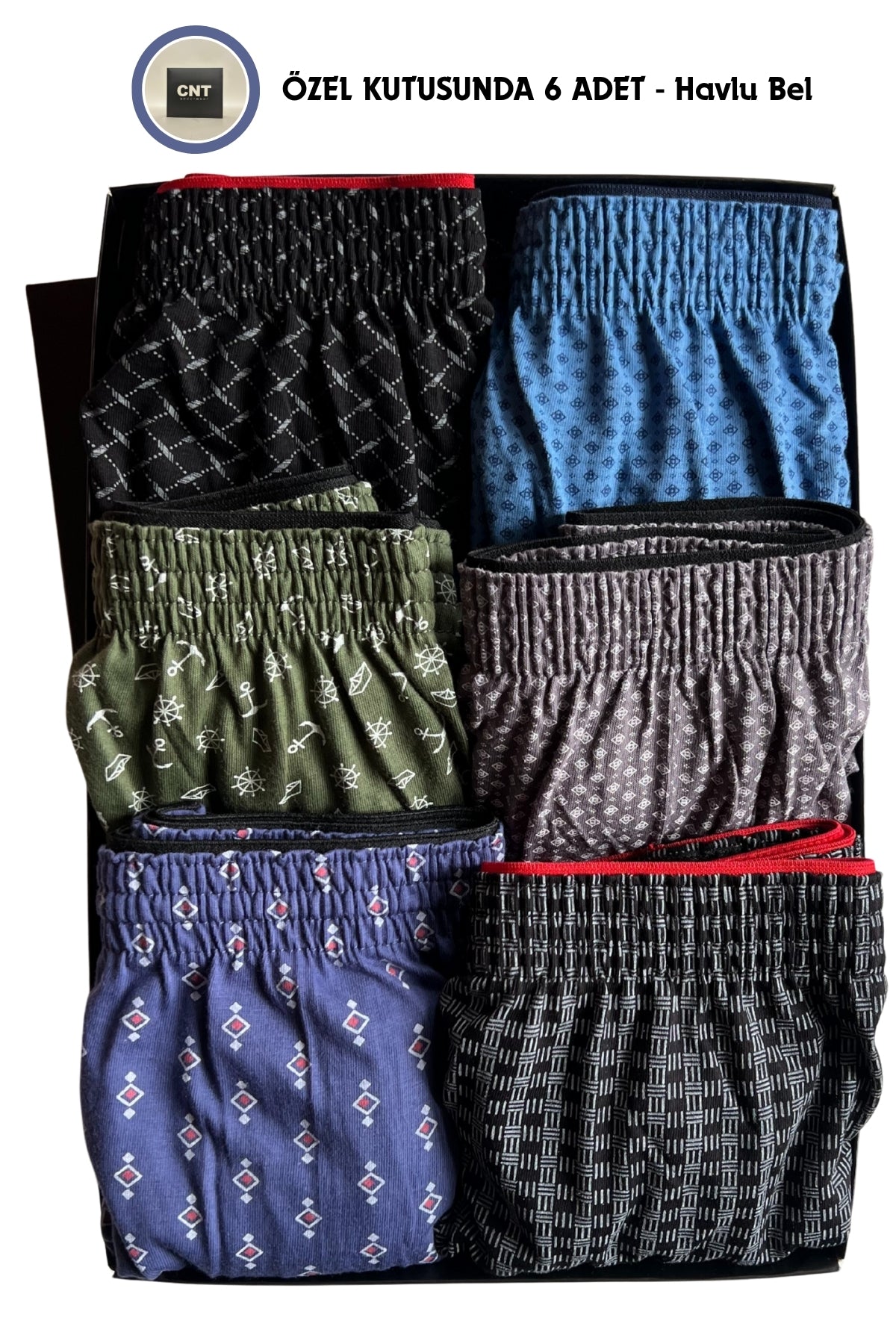 Erkek 6'lı Karışık Desenli Düğmeli Rahat Boxer Şort - Özel Premium Kutusunda