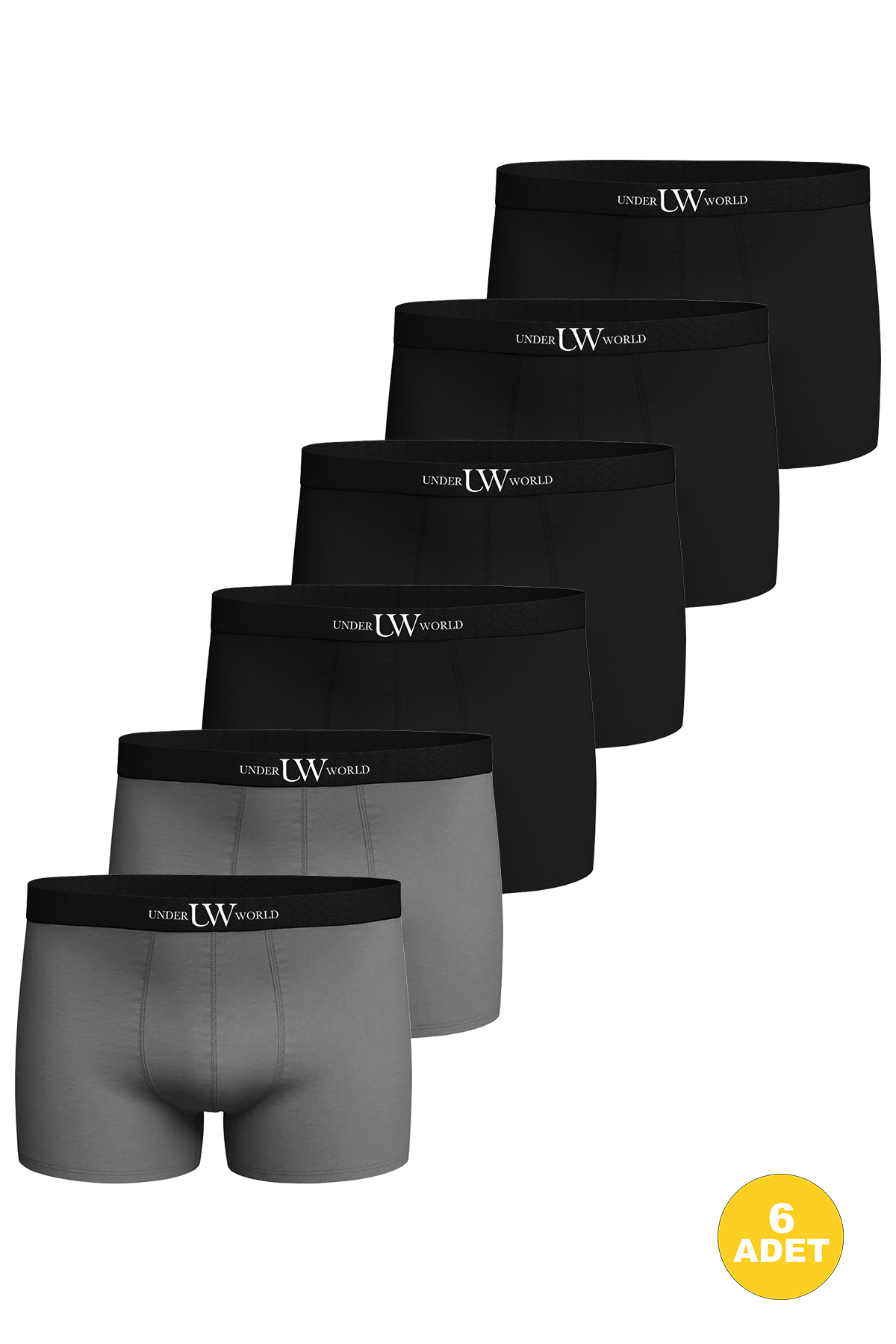 Bu özel Elegance kutusunda UNDERWORLD markalı 6'lı erkek boxer, 4 siyah ve 2 gri renkte likralı kumaştan üretilmiştir. Premium kalite ve şıklığı bir araya getiren bu boxerlar, konforlu ve esnek yapısıyla günlük kullanım için idealdir. Özel Elegance kutusu içinde sunulmasıyla da hediye olarak da mükemmel bir seçenektir.