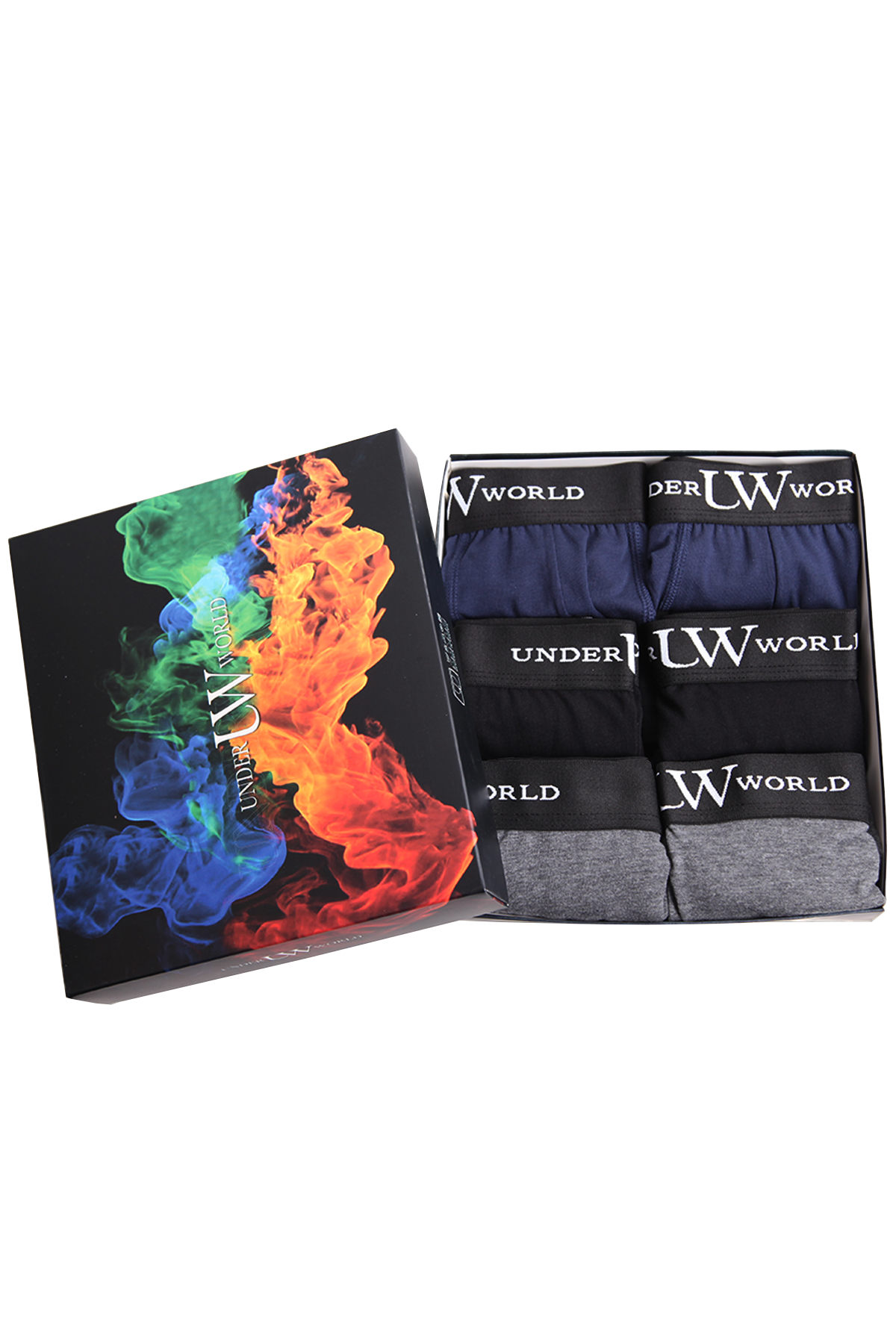 Bu özel Elegance kutusunda UNDERWORLD markalı 6'lı erkek boxer, 2 gri, 2 siyah ve 2 lacivert renkte likralı kumaştan üretilmiştir. Premium kalite ve şıklığı bir araya getiren bu boxerlar, konforlu ve esnek yapısıyla günlük kullanım için idealdir. Özel Elegance kutusu içinde sunulmasıyla da hediye olarak da mükemmel bir seçenektir.