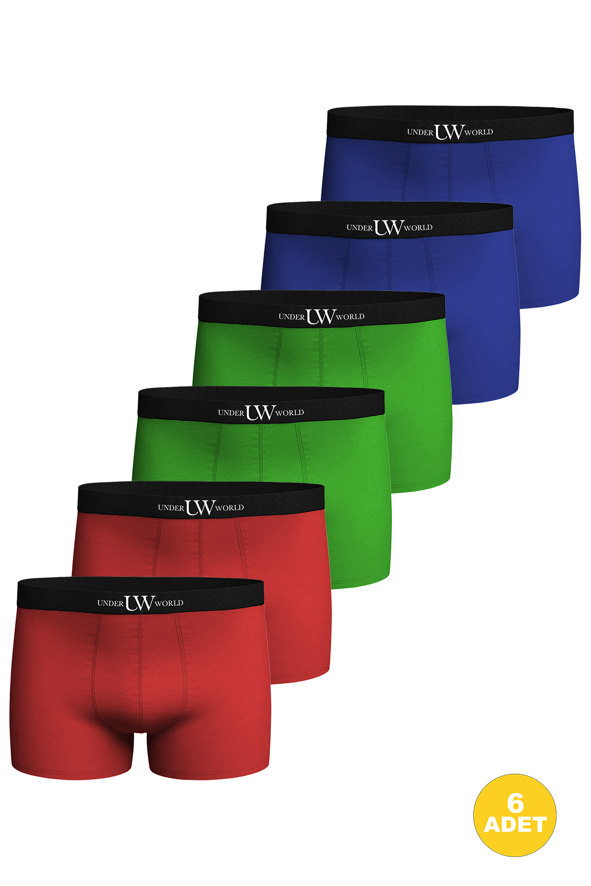Bu özel Elegance kutusunda UNDERWORLD markalı 6'lı erkek boxer, lacivert, yeşil ve bordo renkte likralı kumaştan üretilmiştir. Premium kalite ve şıklığı bir araya getiren bu boxerlar, konforlu ve esnek yapısıyla günlük kullanım için idealdir. Özel Elegance kutusu içinde sunulmasıyla da hediye olarak da mükemmel bir seçenektir.