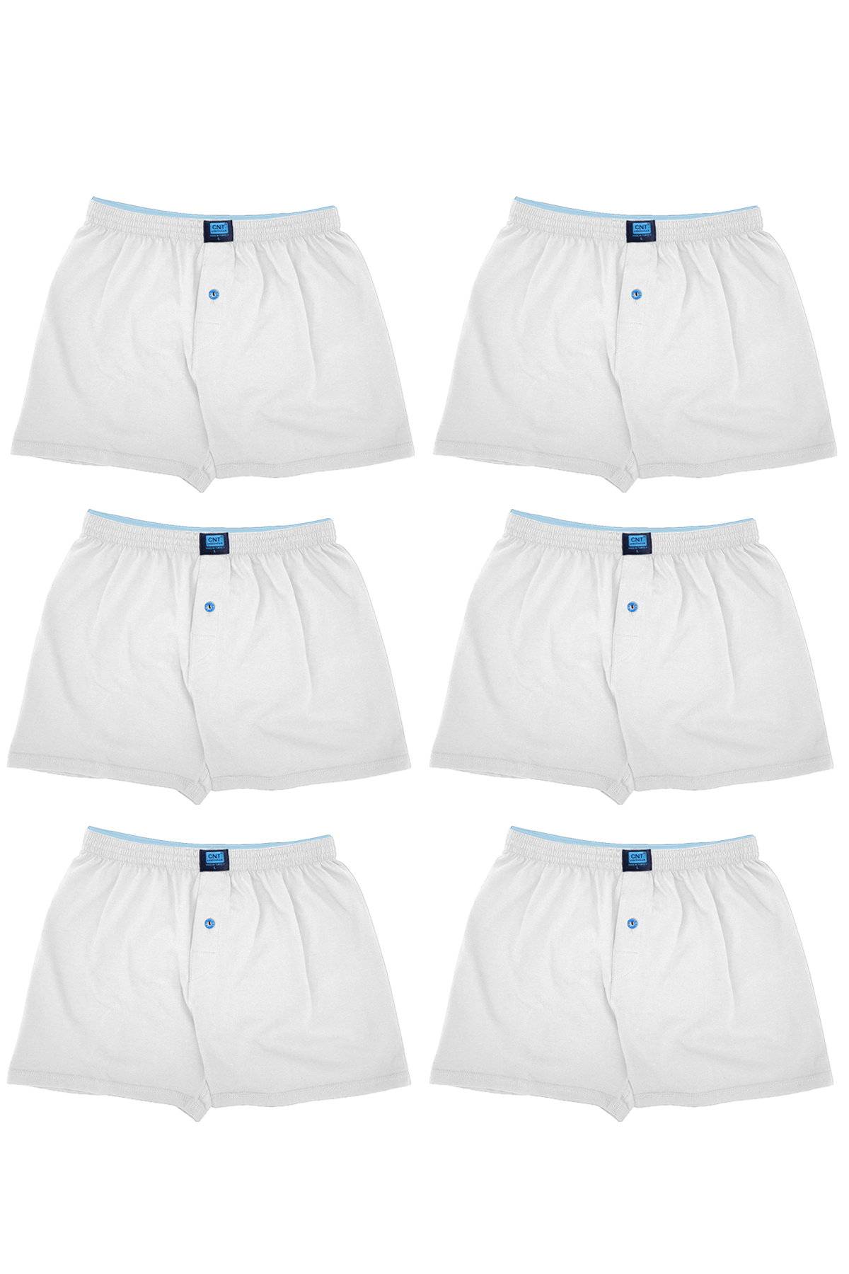 Erkek 6'lı Penye Düğmeli Rahat Beyaz Boxer - Özel Premium Paketinde