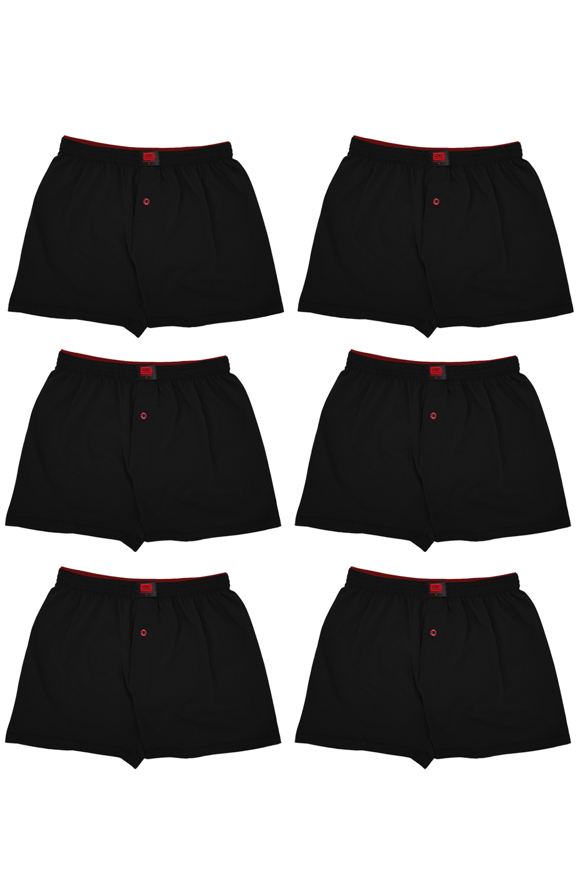 Erkek 6'lı Penye Düğmeli Rahat Siyah Boxer - Özel Premium Paketinde