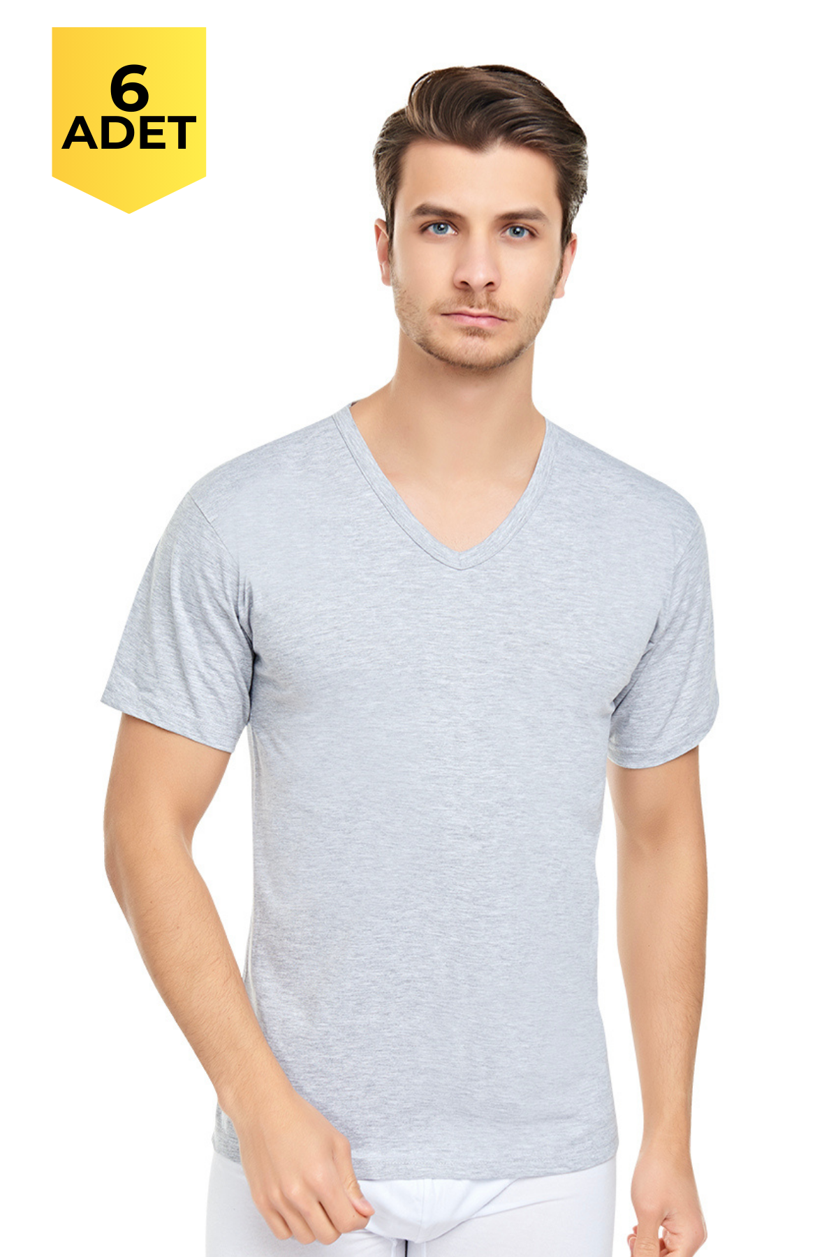 Erkek 6'lı V Yaka Gri Penye Fanila - Özel Premium Kutusunda