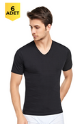 Erkek 6'lı V Yaka Siyah Penye Fanila - Özel Premium Kutusunda