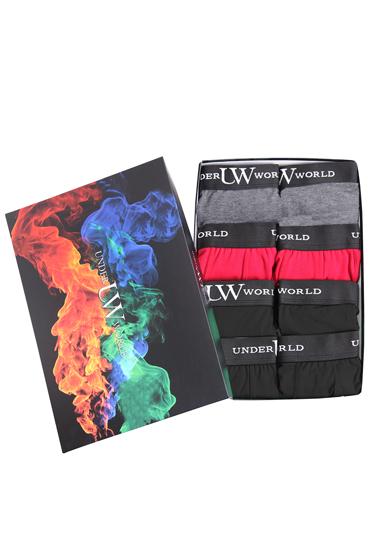 Bu özel Elegance kutusunda UNDERWORLD markalı 8'li erkek boxer, 4 siyah, 2 bordo ve 2 gri renkte likralı kumaştan üretilmiştir. Premium kalite ve şıklığı bir araya getiren bu boxerlar, konforlu ve esnek yapısıyla günlük kullanım için idealdir. Özel Elegance kutusu içinde sunulmasıyla da hediye olarak da mükemmel bir seçenektir.