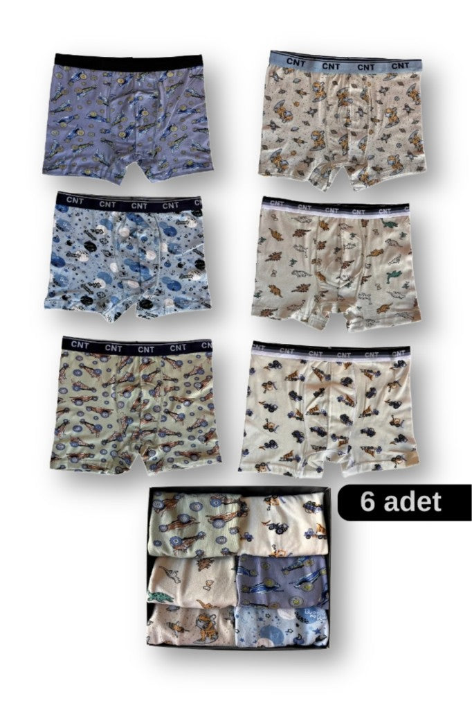 Erkek Çocuk 6'lı Karışık Desenli Boxer - Özel Kutusunda