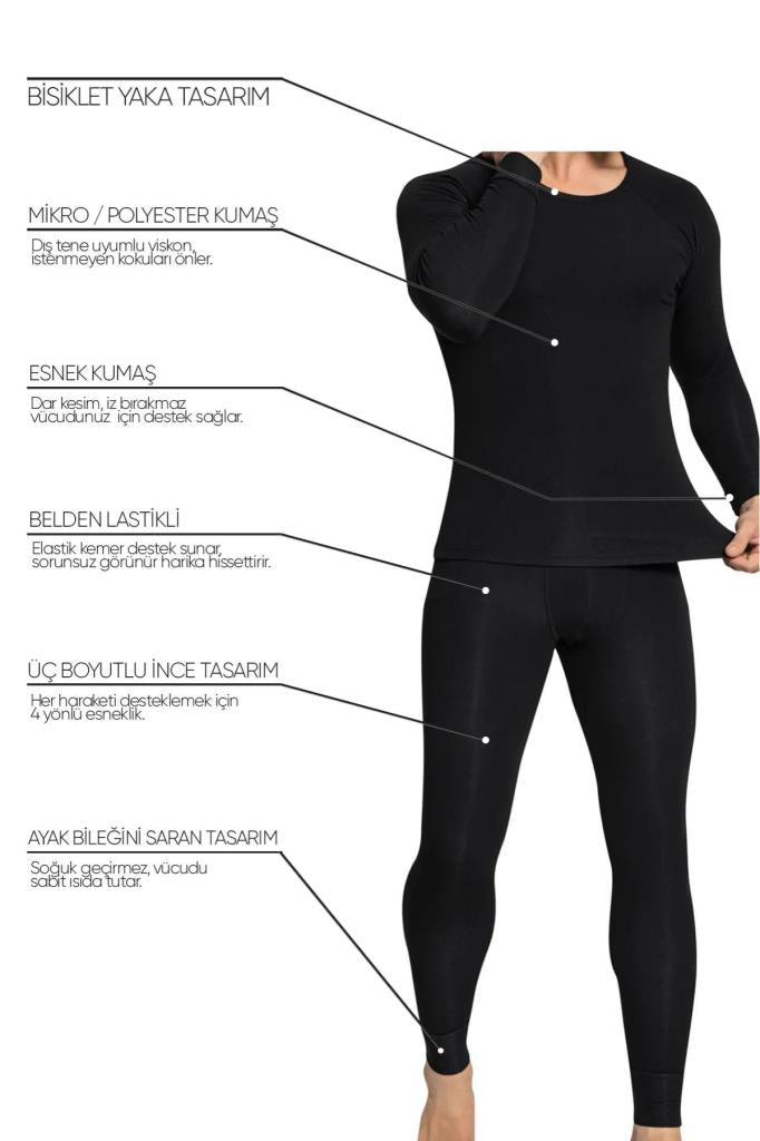 CNT Erkek Siyah Uzun Kollu Termal Alt Üst İçlik Takım: Sıcaklığınızı Kontrol Altında Tutun!