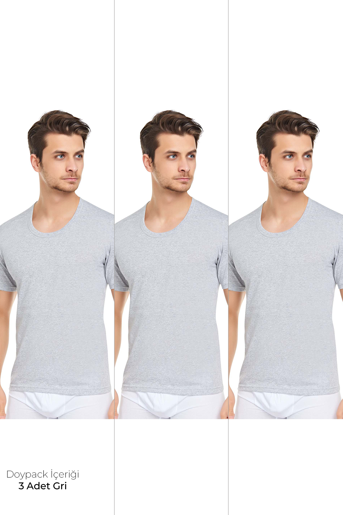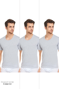Erkek 3'lü Bisiklet Yaka Gri Fanila - Özel Paketinde