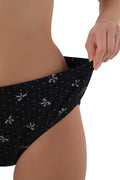 Fiyonk desenli %100 pamuk yüksek bel külot, hem şıklığı hem de doğallığı bir arada sunuyor! %100 pamuklu kumaşı sayesinde cildinizin nefes almasına olanak tanır ve gün boyu ferahlık sağlar. Yumuşak dokusu, cildinizde hassas bir his bırakırken tahriş riskini en aza indirir. Yüksek bel tasarımı, karın bölgesini nazikçe sararak toparlayıcı bir etki sunar ve zarif bir görünüm kazandırır. Sevimli fiyonk desenleriyle hem şık hem de zarif bir stil oluştururken, rahat kalıbı ile gün boyu konfor sağlar. Doğal ve şık iç giyim arayanlar için mükemmel bir seçim!