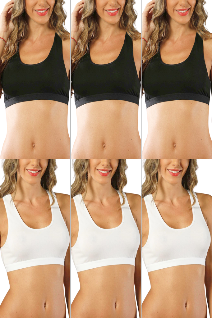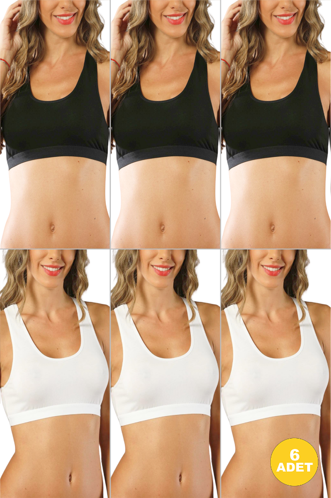 Genç Kız Pamuklu Likralı Yarım Atlet Sporcu Sütyeni 6'lı Paket