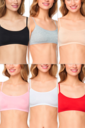 Genç Kız Pedsiz Pamuklu Likralı Yarım Atlet Alıştırma Sütyeni 6'lı Paket