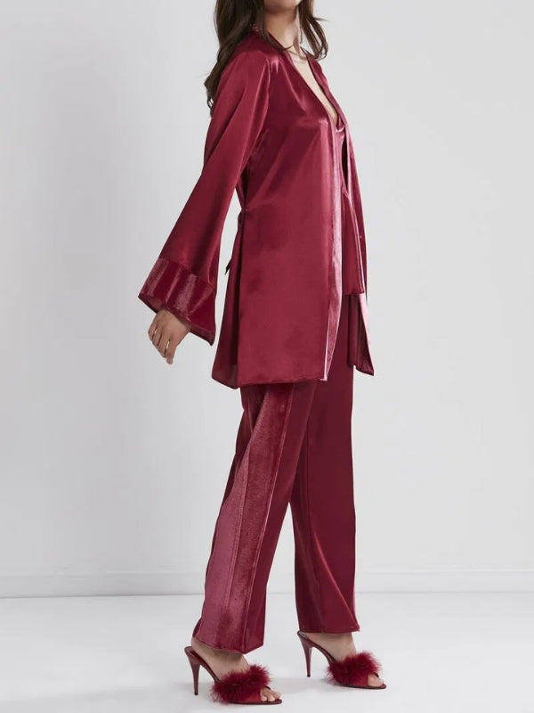 Kadife Saten Kadın Pijama Takımı – Bordo / Mist / Pudra / Siyah / Lacivert / Royale