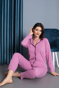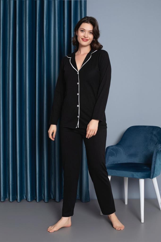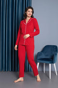 Kadın %100 Pamuk Uzun kol Önden Düğmeli Pijama Takım